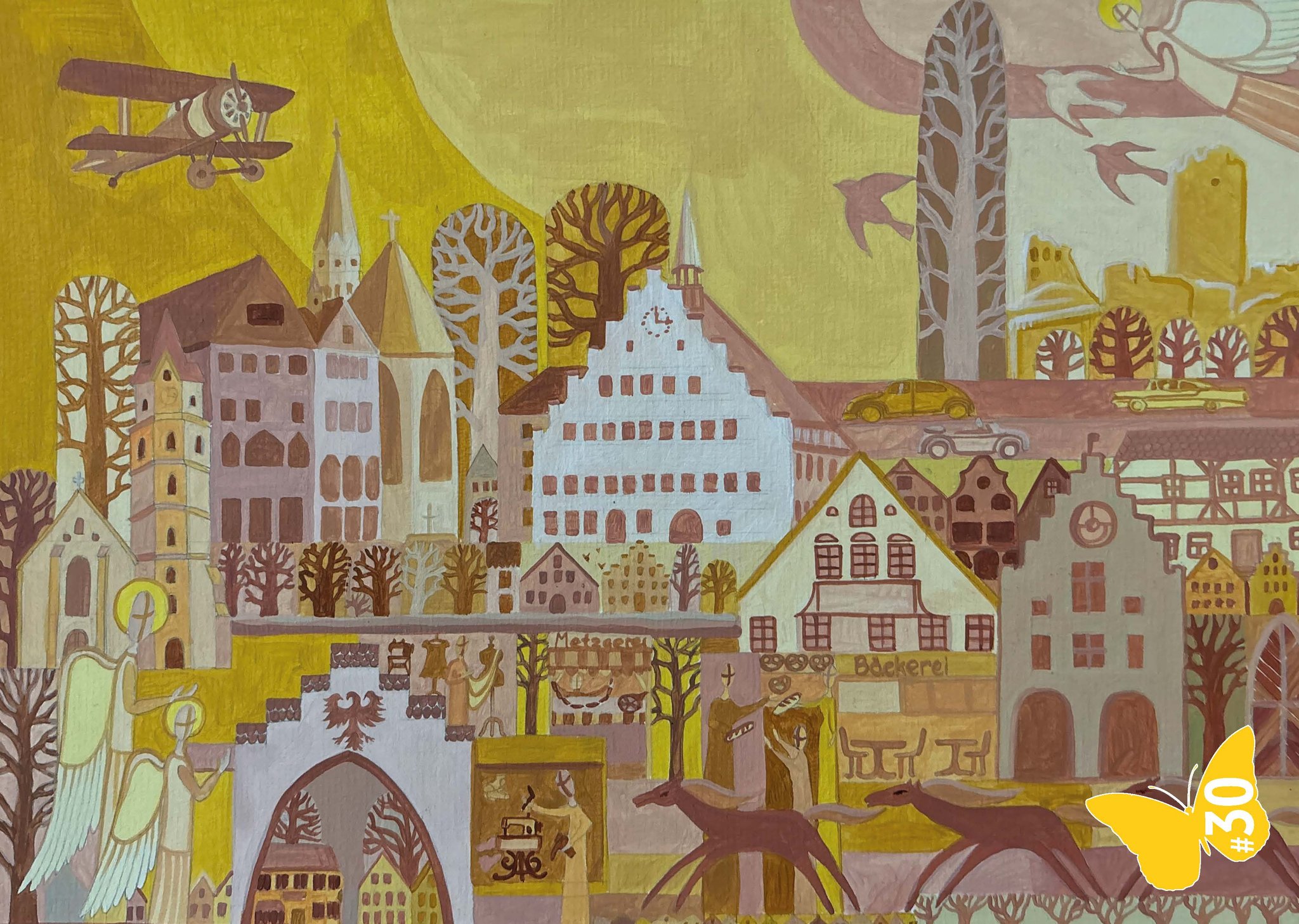 Durch die Auswahl Ihrer Favoriten, helfen Sie der Fachjury zu entscheiden, welche Kunstwerke auf die Säulen in der Passage zum Stadtquartier "NeuerMarkt" übertragen werden.