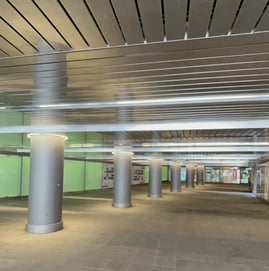 Die Passage unter der Dammstraße zwischen Unterem Tor und dem Stadtquartier „NeuerMarkt“ ist von neun markanten Säulen geprägt.